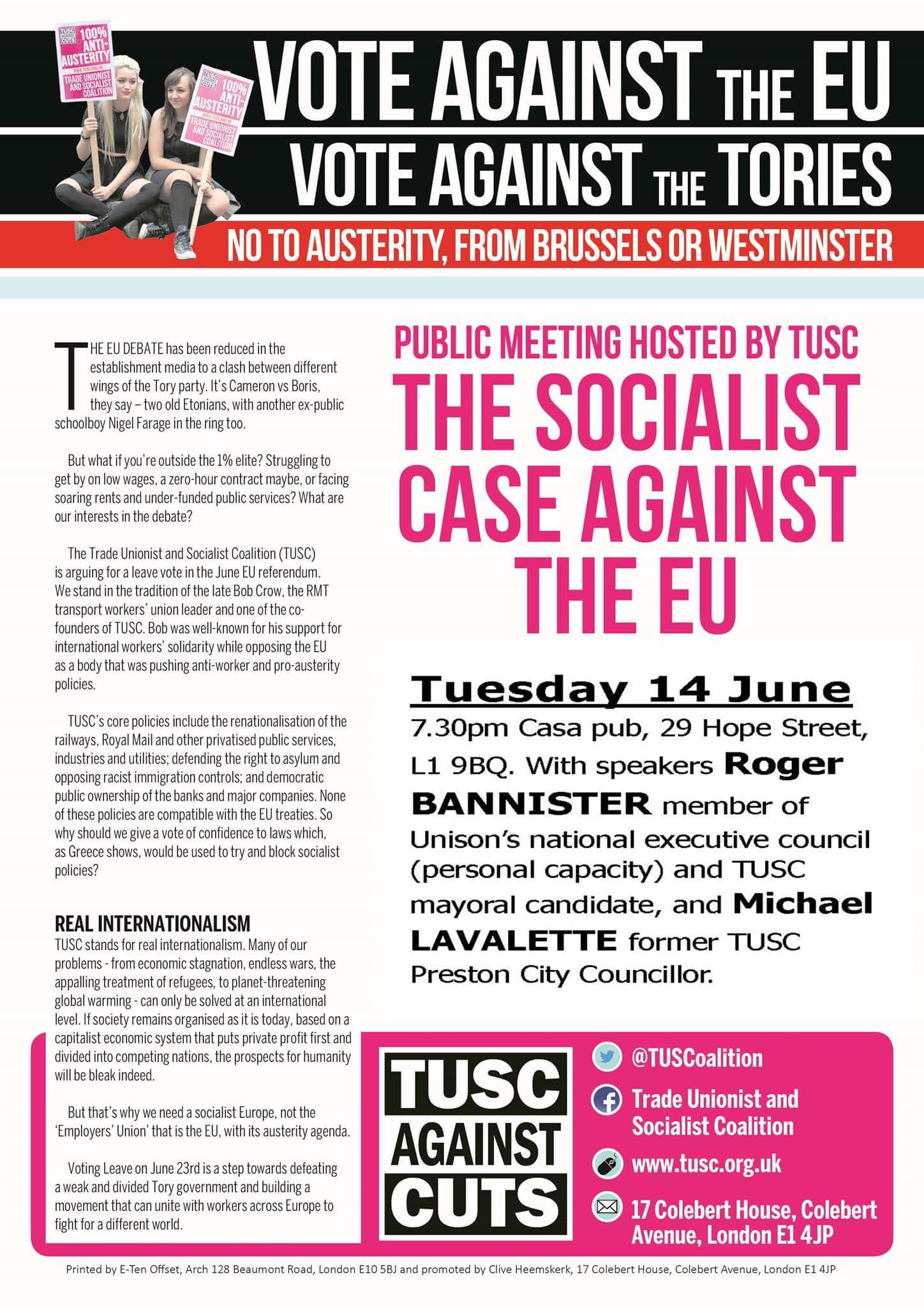 | A flyer from TUSC one of the groups that supported the so called "Lexit" |